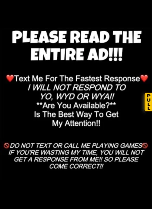 -------------------------------------------- πΉDonations start at 150 for incall/outcall Qv's My price is my price I DON'T Negoitate Negotiaters / Timewasters / scam links blocked Generous Gentlemen only serious Inquires ----------------------------------------------------- I DONT HAVE ANY DEALS β DONT ASK β βcheap men/ cops / pimps / GFE / recording β bareskin / anal / kissing / bbbj / explicit talk Excessive callers & Texters will be blocked Dont HMU if your Cheap or Not ready too book